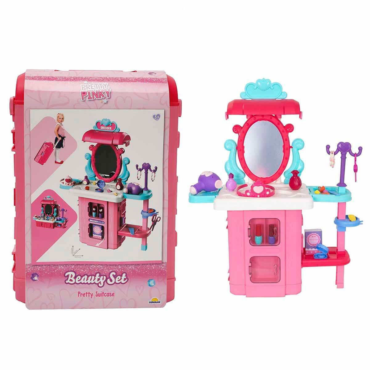 Pretty Pinky’nin 3’ü 1 arada oyun seti, bu mobil giyinme odasıyla oynarken hem eğlenmek hem de deneyimlemek isteyen küçük moda tutkunları için mükemmel.
