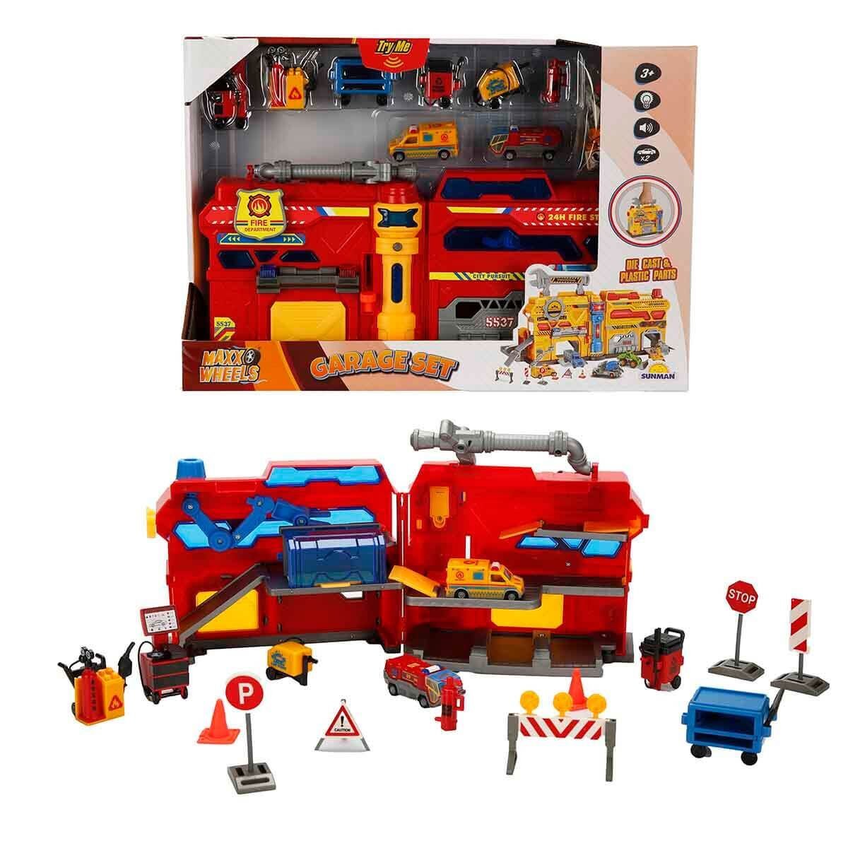 4539 Maxx Wheels Sesli ve Işıklı Garaj Seti İnşaat Garajı -Sunman