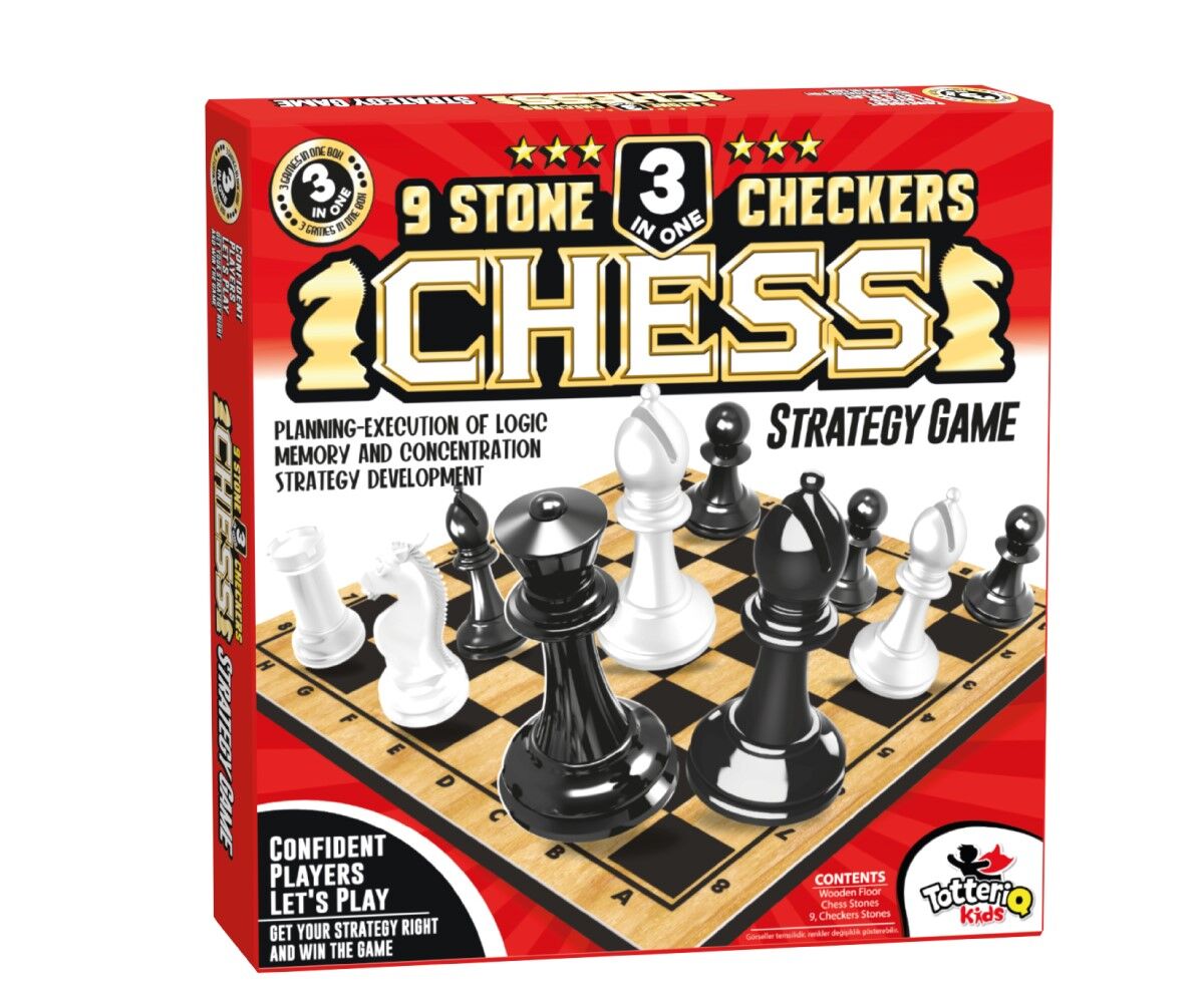 8225 SATRANÇ 9 TAŞ DAMA 3 Oyun Bir arada.